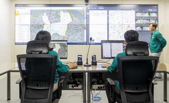디지털 스크린 기반 통합관제를 통해 관내 교통 흐름, 기상 정보, 주요 시설 현황 등을 한눈에 확인할 수 있으며, 방범 CCTV와 연계된 스마트시티 통합플랫폼을 활용해 재난위험시설 및 취약지역을 실시간 모니터링하여 위험요소를 조기에 발견할 수 있다.